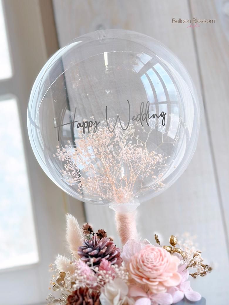 透明なバルーンの中には、『幸福』という意味を持つかすみ草(ドライ)を込めて。