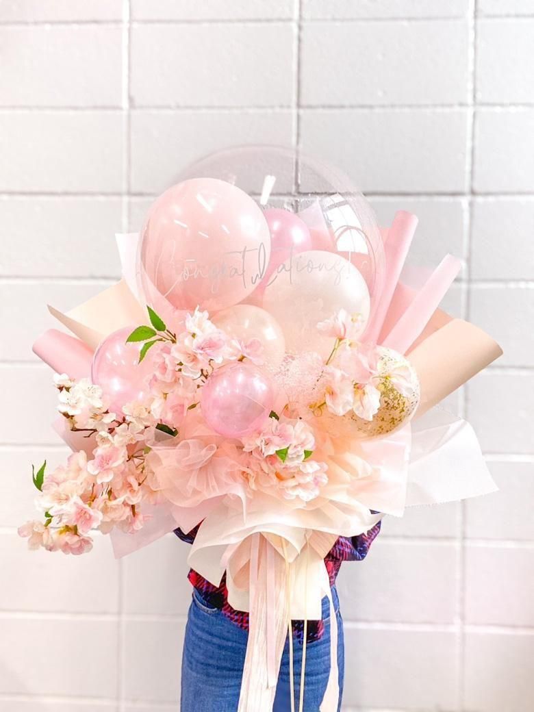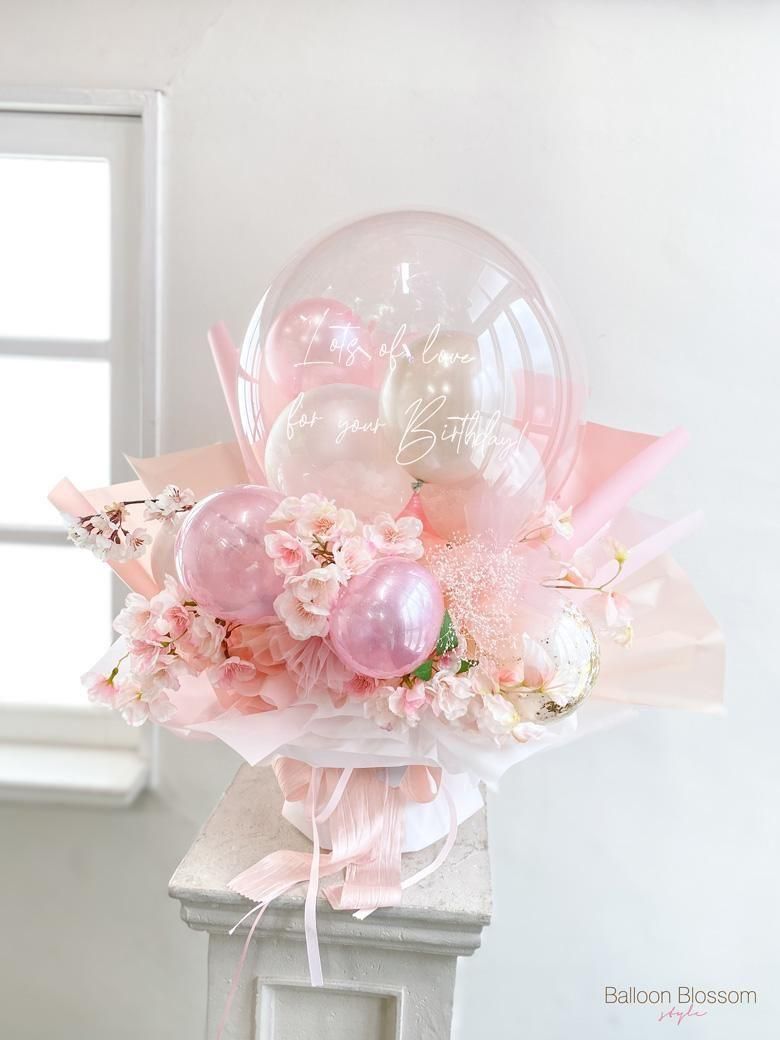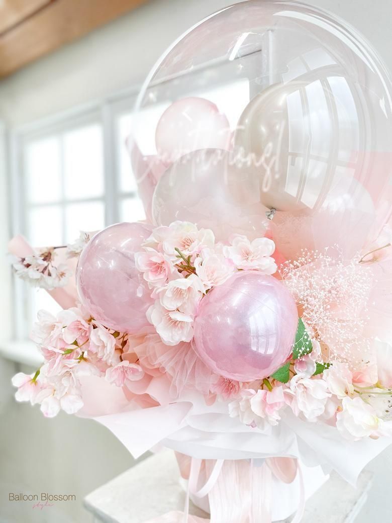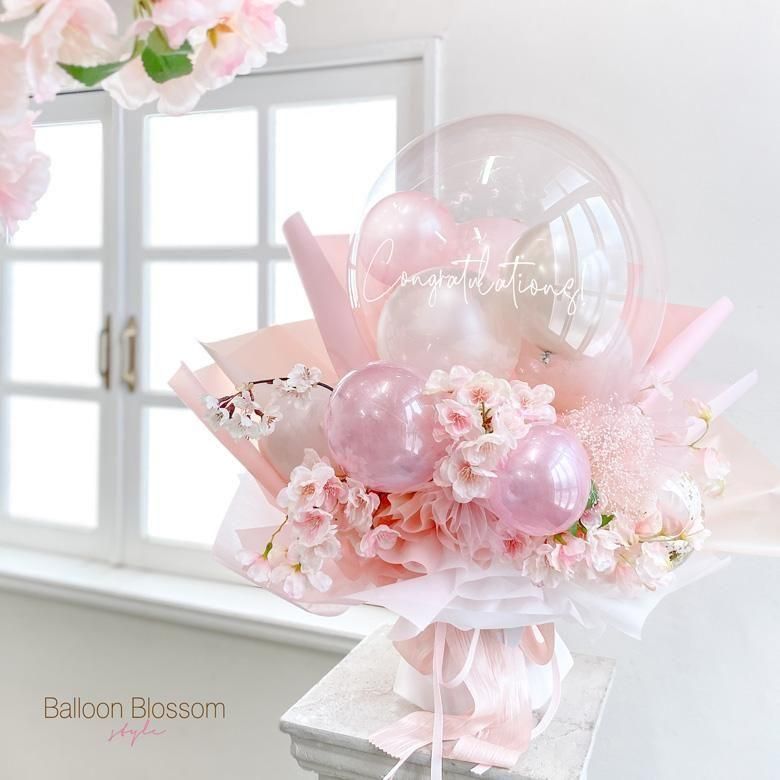 優しい桜ピンクのバルーンがとっても可愛いブーケです♪