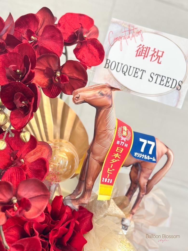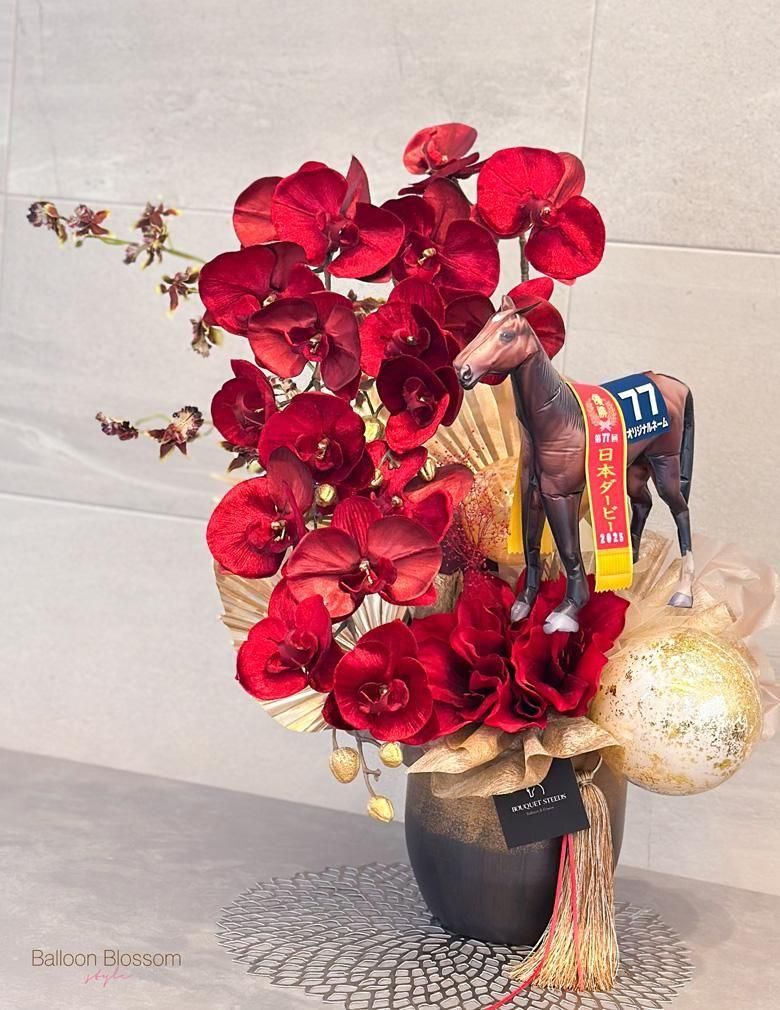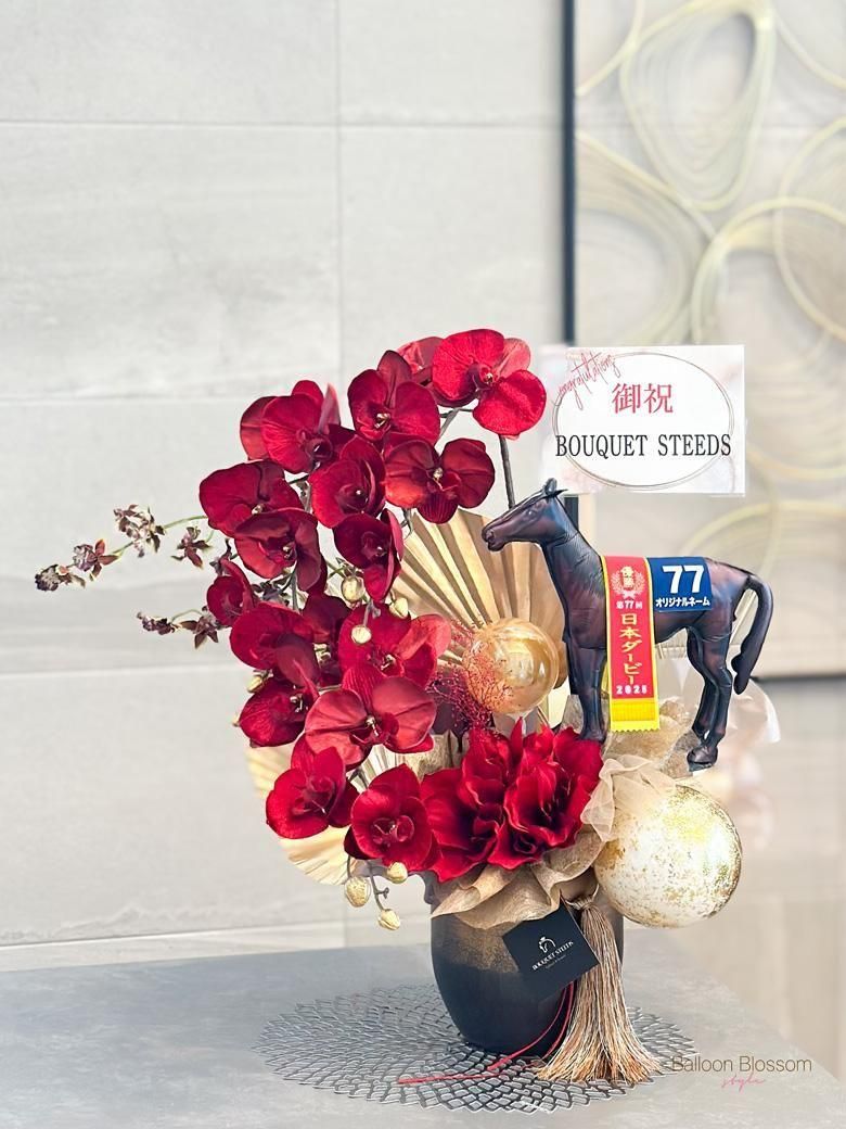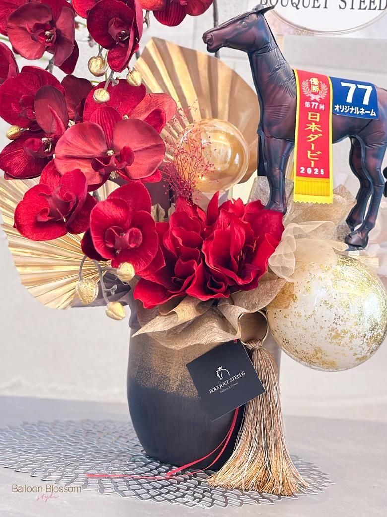 アレンジメントからサラブレッドバルーンを外して、別の場所に飾ることも可能。思い出を長く楽しめる仕様です。
