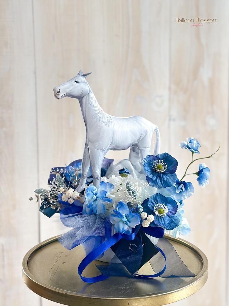 アレンジメントからサラブレッドバルーンを外して、別の場所に飾ることも可能。思い出を長く楽しめる仕様です。