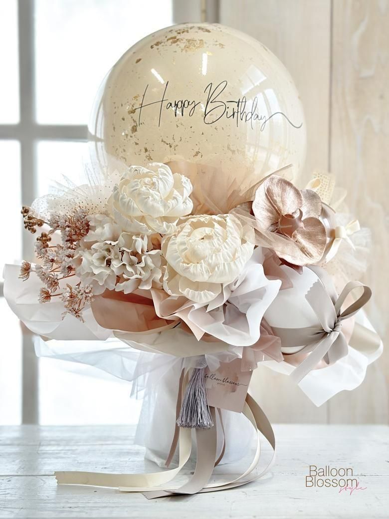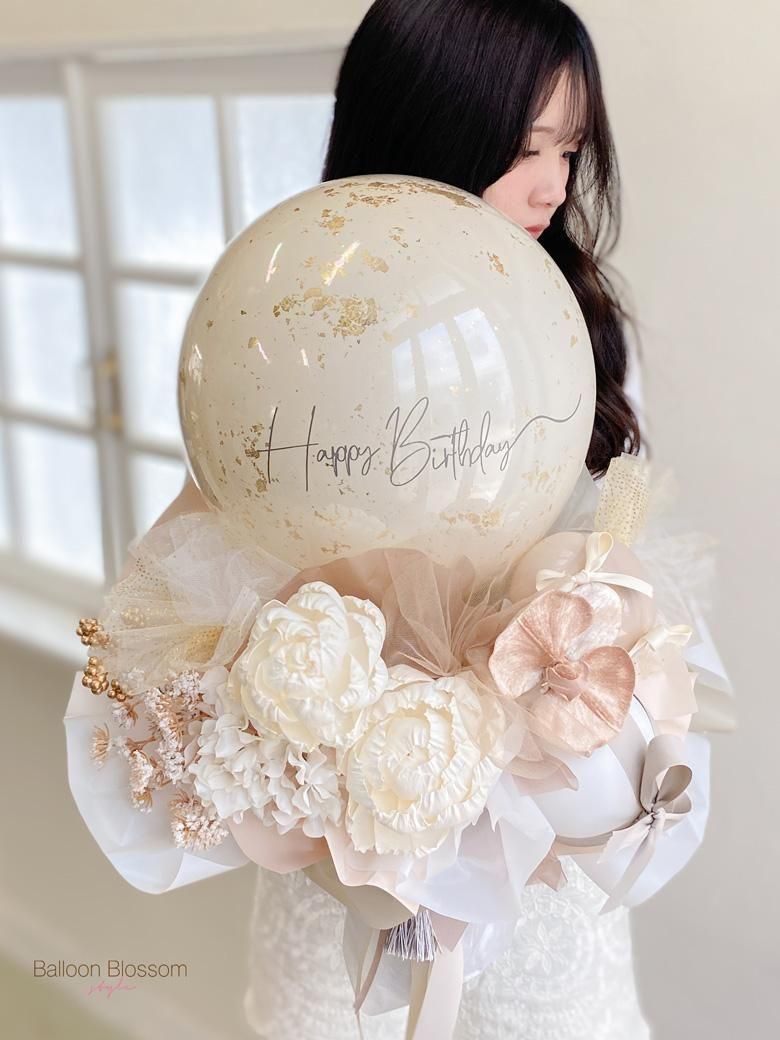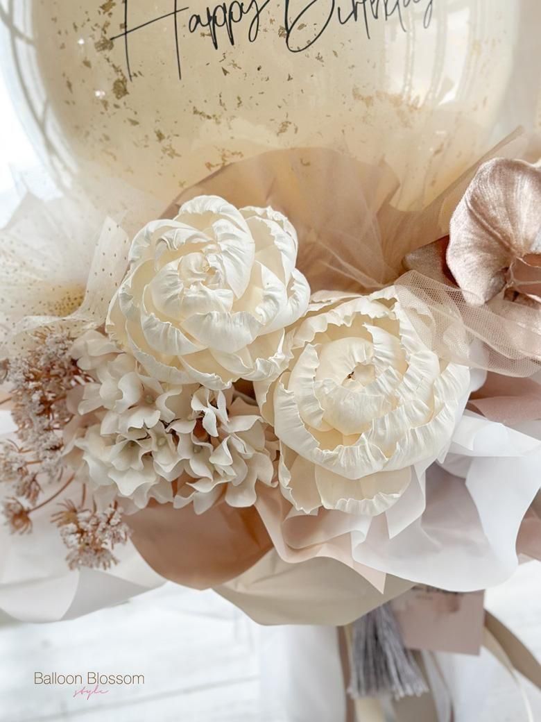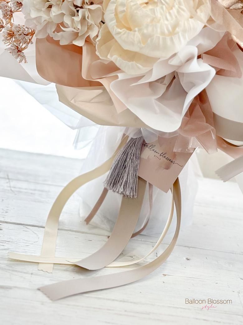 淡い色合いと柔らかな質感が調和した、大人可愛いバルーンフラワー “Mellow ブーケ” 。