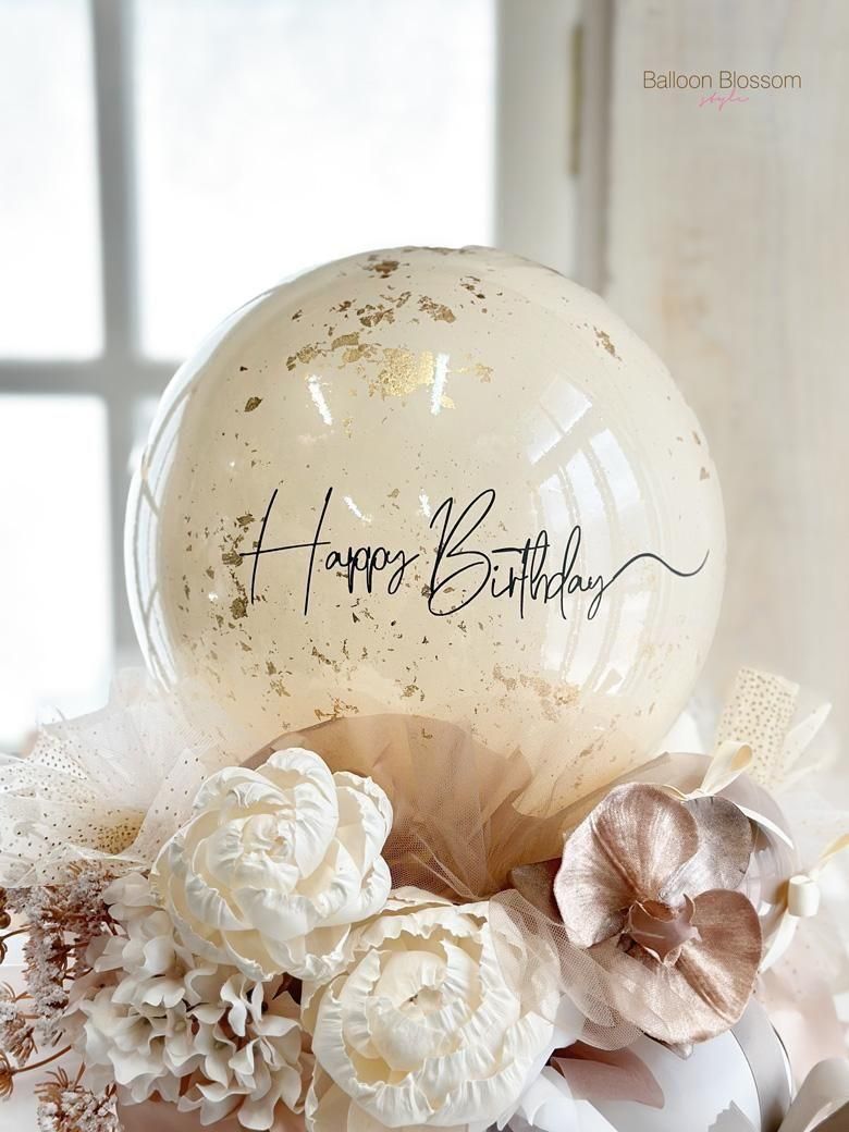 トップのバルーンには金箔を散りばめて、メッセージ文字をのせてお届けします。